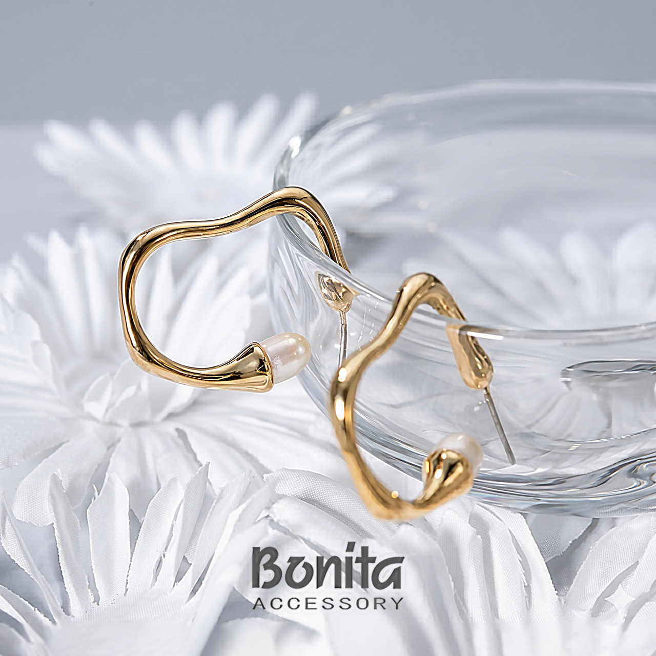 【Bonita】鈦針/輾轉珍珠耳針/耳環【700-9206】金色/任選三件NT$290