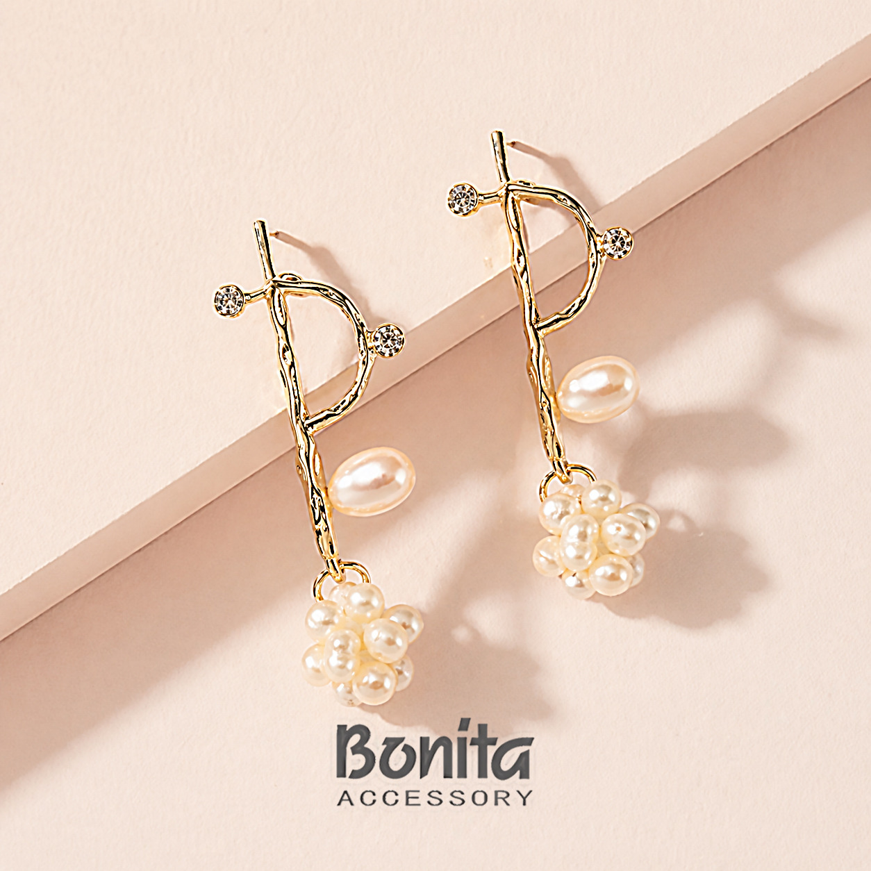 【Bonita】925銀針/音符珍珠/左右不對稱耳針/耳環【700-9213】金色/任選二件NT$290