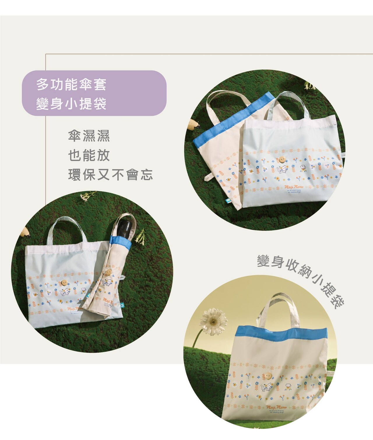 ●外層防潑水加工,水滴不留痕 。